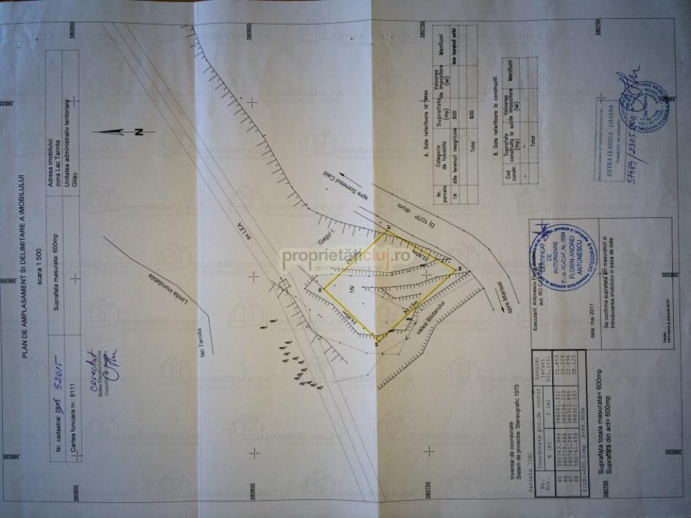 Vanzare teren 600mp, extravilan, situat la lacul Tarnita, la 100m inainte de plaja 2, front 22.90ml la drum asfaltat DJ107P. Distanta de la teren la lac 35m.
