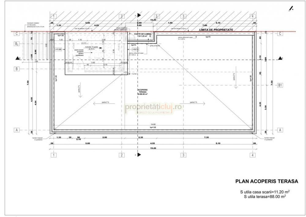 Apartament etaj 2: 102 mp + 96 mp terasa situata deasupra apartamentului,compartimentat: living, bucatarie, 2 dormitoare, 2 bai, pret: