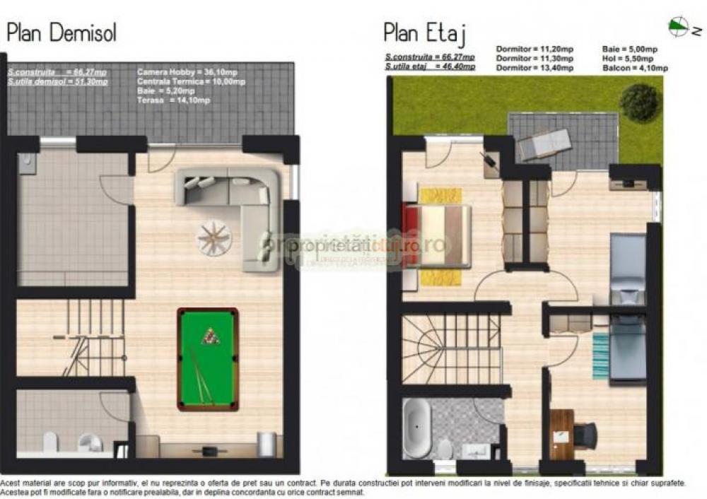 Casele sunt construite din caramida, termoizolate, ewxteriorul la stadiu finisat iar interiorul la stadiu semifinisat.