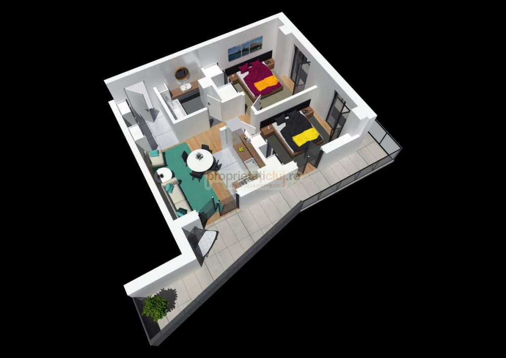 Apartament 3 camere cu terasa de 26 mp